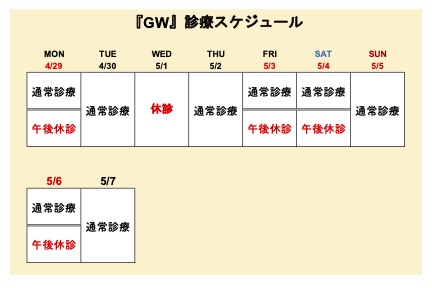 GWの診察のお知らせ